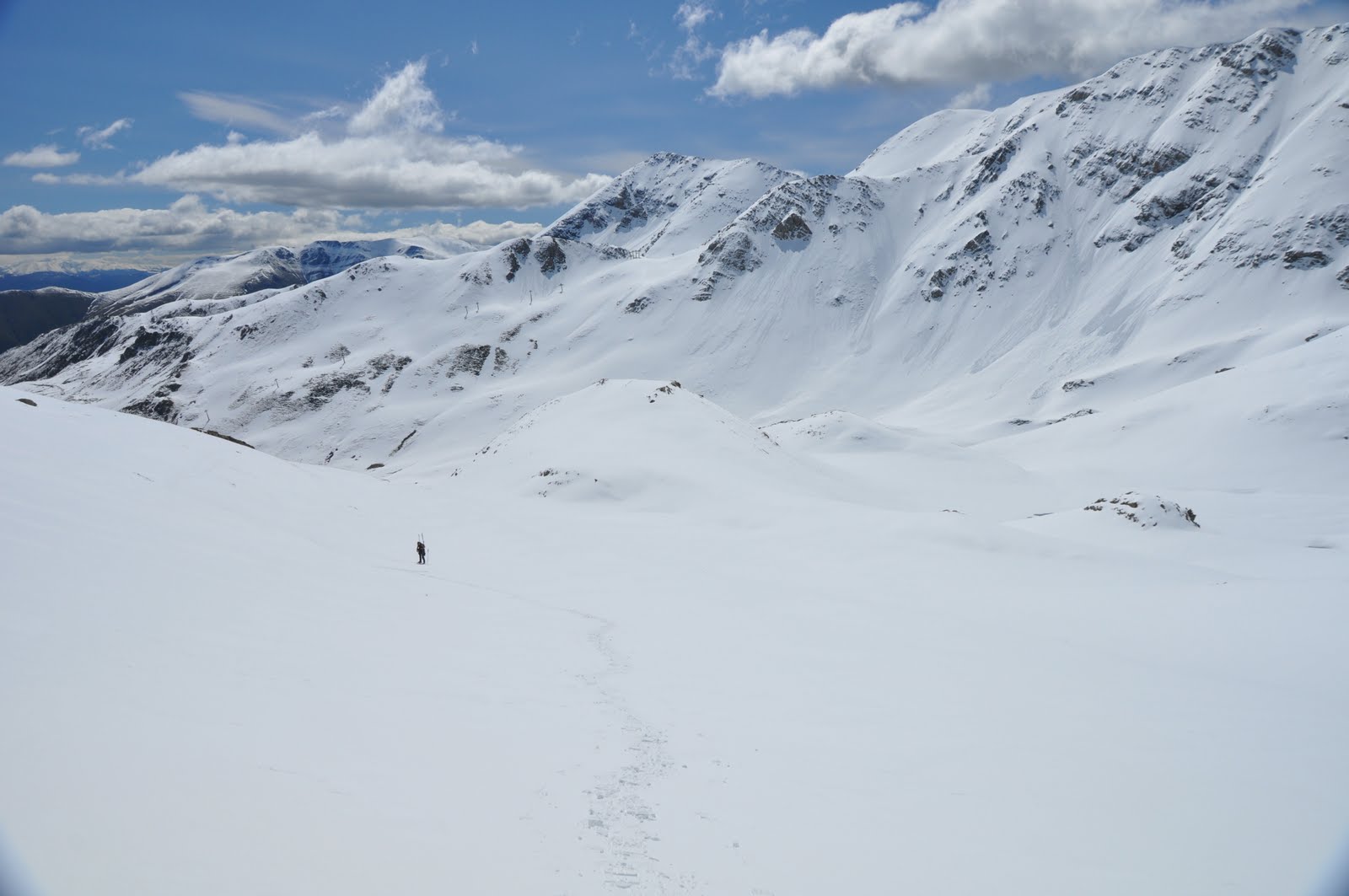 agafo el cotxe despres de haver carregat tots els trastos... que en son uns quants entre motxila, raquetes, esquis, botes de recanvi, botes d'esquiar, pals.... sense tindre clar el desti final d'aquet curt trajecte enfilo cap a França... decideixo parar a el puigmal... almenys passa aviam com esta el tema baix al parking i depent com ho vegui tiro cap a eine...... res ja pujant començo a veure neu als vorals... una sensació inexplicable s'apodera de mi... sense pensar-ho apreto mes l'accelerador... adelanto a un frances "dominguero" i arribo al parking.... els meus ulls ploren d'alegria casi...... neu per tot arreu.. desde el cotxe mateix hem puc posar les raquetes.... aixo vol dir que arribare al parking esquiant casi fins al cotxe amb els esquis posats.... qui ho diria a 8 de maig......